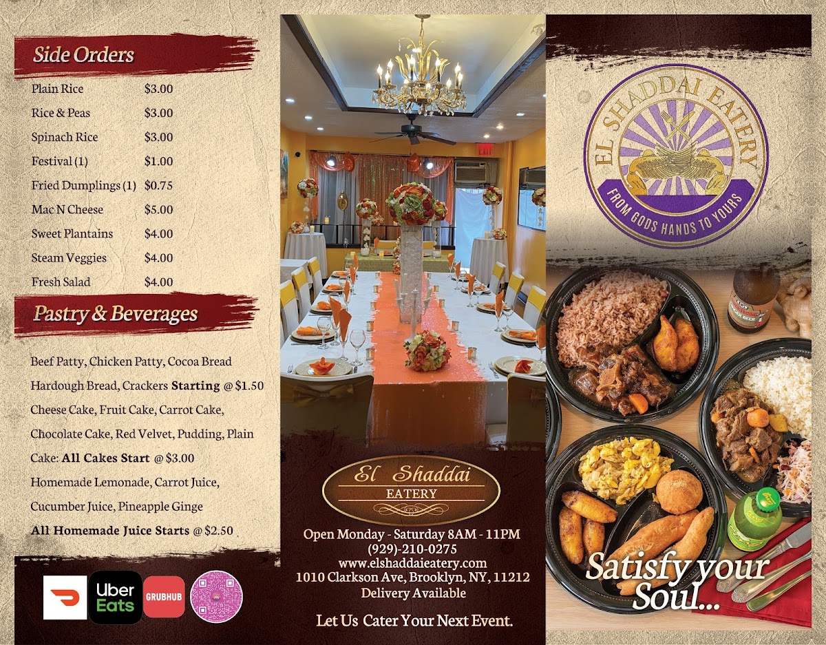 Welcome to El Shaddai Eatery, a gem nestled in the heart of Brooklyn, NY. This Jamaican restaurant offers a vibrant menu that captures the essence of authentic Jamaican cuisine. From the moment you step in, you are greeted by a warm, inviting atmosphere complemented by attentive service. Highlights include the incredibly tender oxtail, which practically melts in your mouth, and dishes like ackee and saltfish that evoke fond culinary memories of Jamaica.